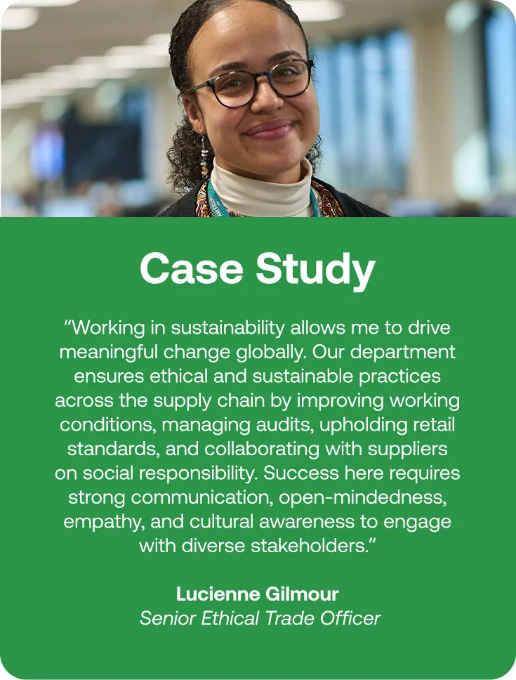 Our department is key in ensuring that ethical and sustainable practices are embedded across the supply chain. We assess and aim to improve working conditions, monitor and manage several audit schemes, take responsibility for upholding the retail customer’s requirements, and collaborate with suppliers to achieve the highest levels of social responsibility.