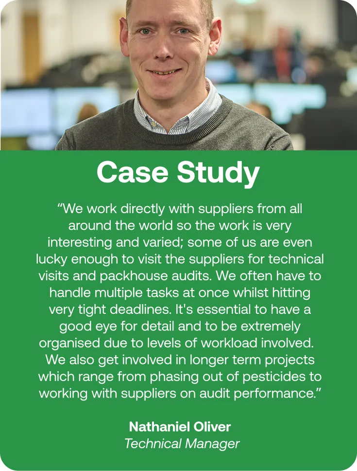“We work directly with suppliers from all around the world so the work is very interesting and varied; some of us are even lucky enough to visit the suppliers for technical visits and packhouse audits.