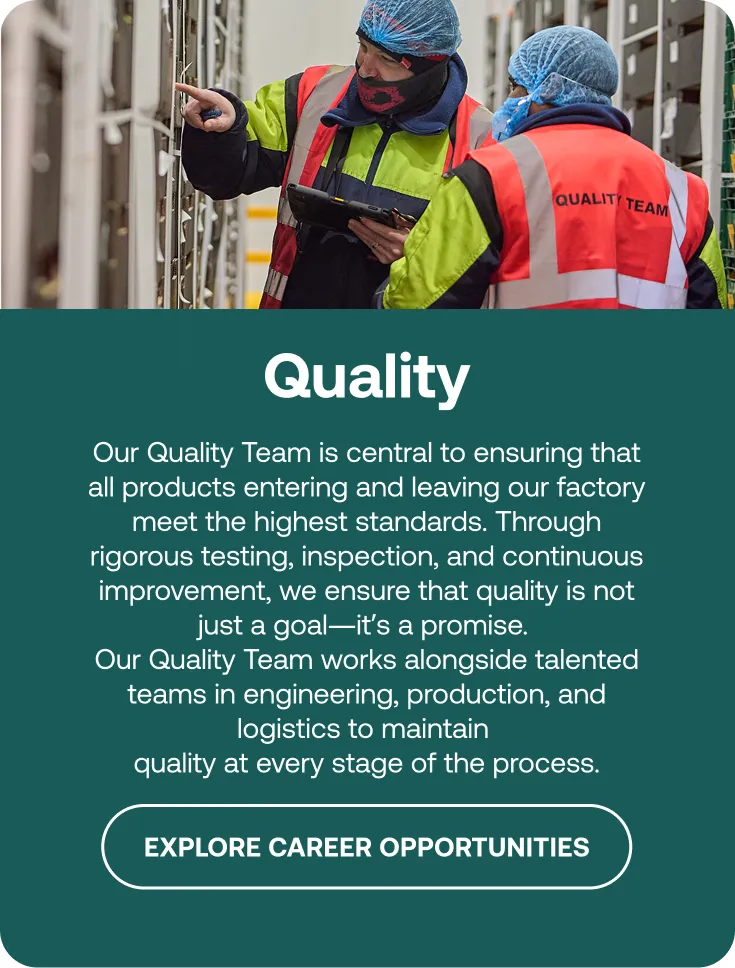 Our Quality Team is central to ensuring that all products entering and leaving our factory meet the highest standards. Through rigorous testing, inspection, and continuous improvement, we ensure that quality is not just a goal—it’s a promise. Our Quality Team works alongside talented teams in engineering, production, and logistics to maintain quality at every stage of the process.