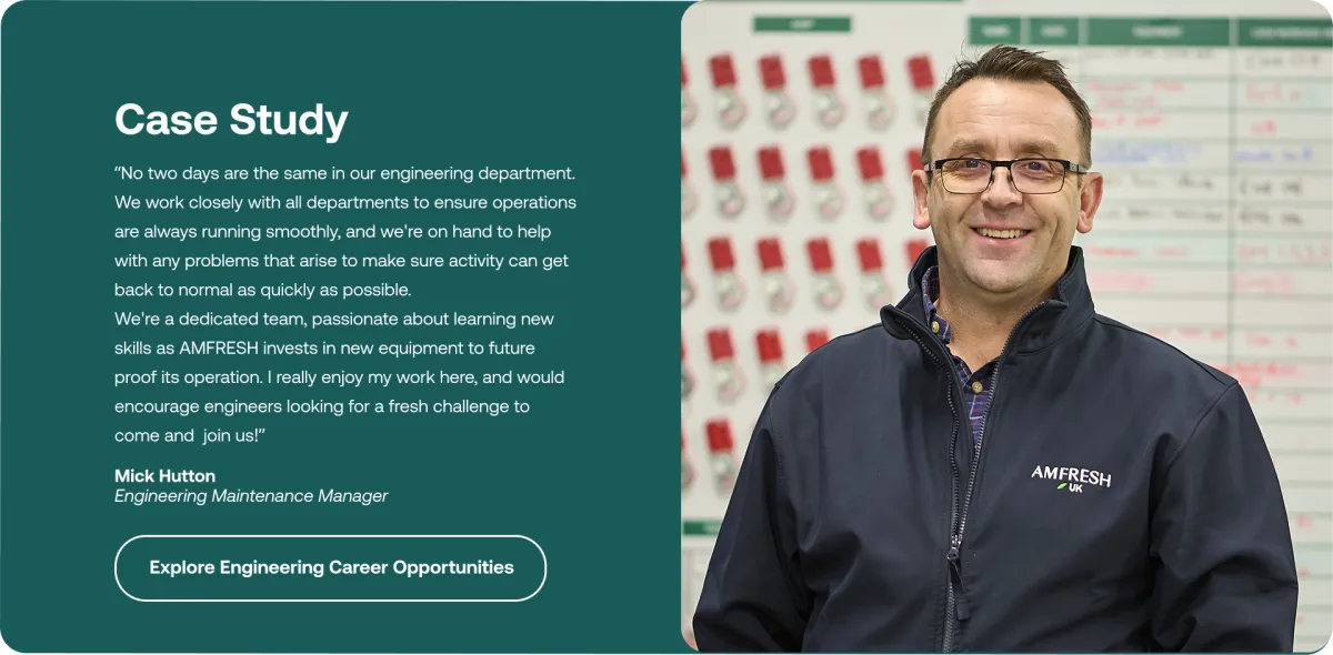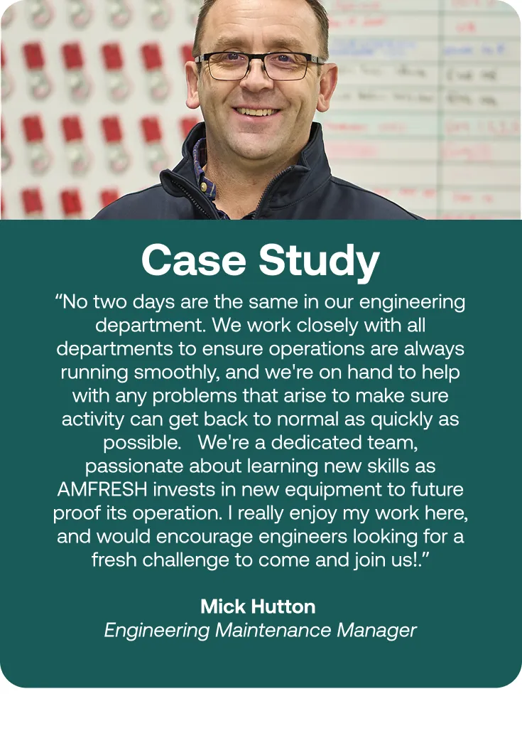 We're a dedicated team, passionate about learning new skills as AMFRESH invests in new equipment to future proof its operation. I really enjoy my work here, and would encourage engineers looking for a fresh challenge to come and join us!”