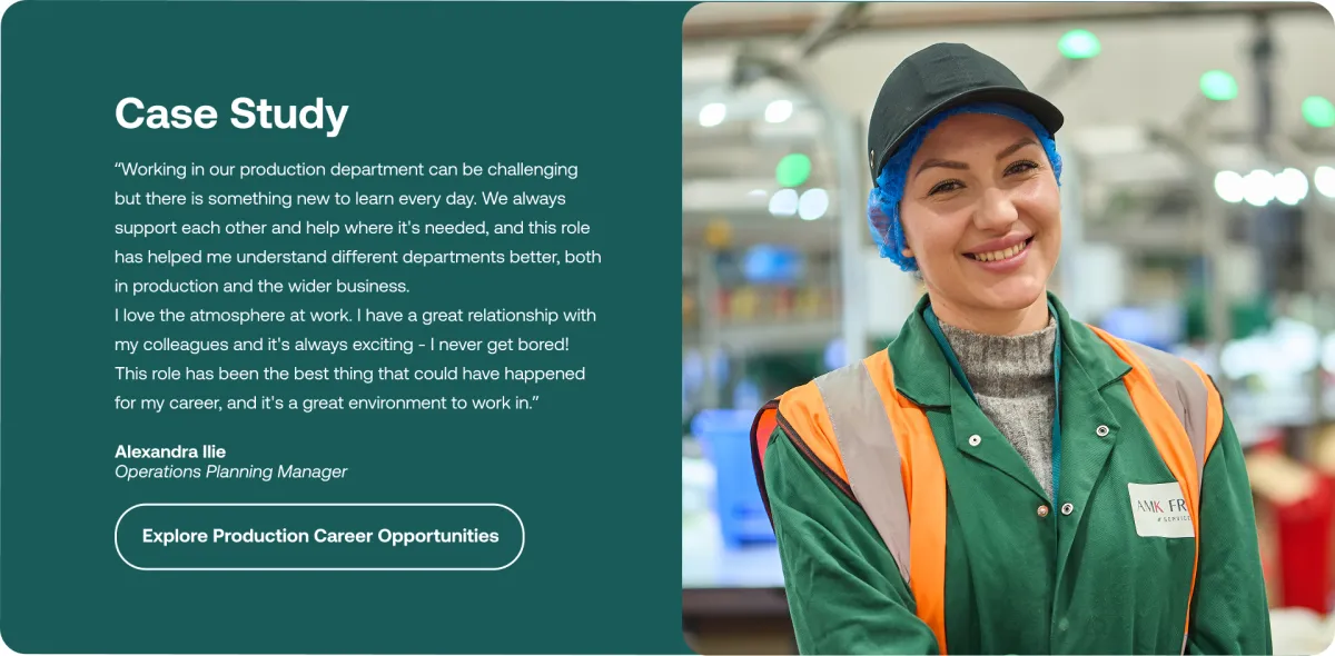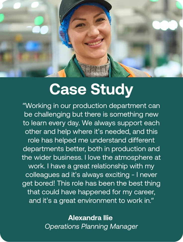 “Working in our production department can be challenging but there is something new to learn every day. We always support each other and help where it's needed, and this role has helped me understand different departments better, both in production and the wider business.