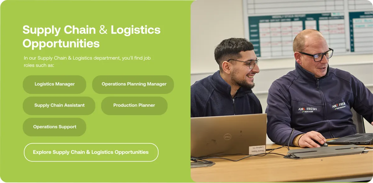 In our Supply Chain & Logistics department, you'll find job roles such as:
